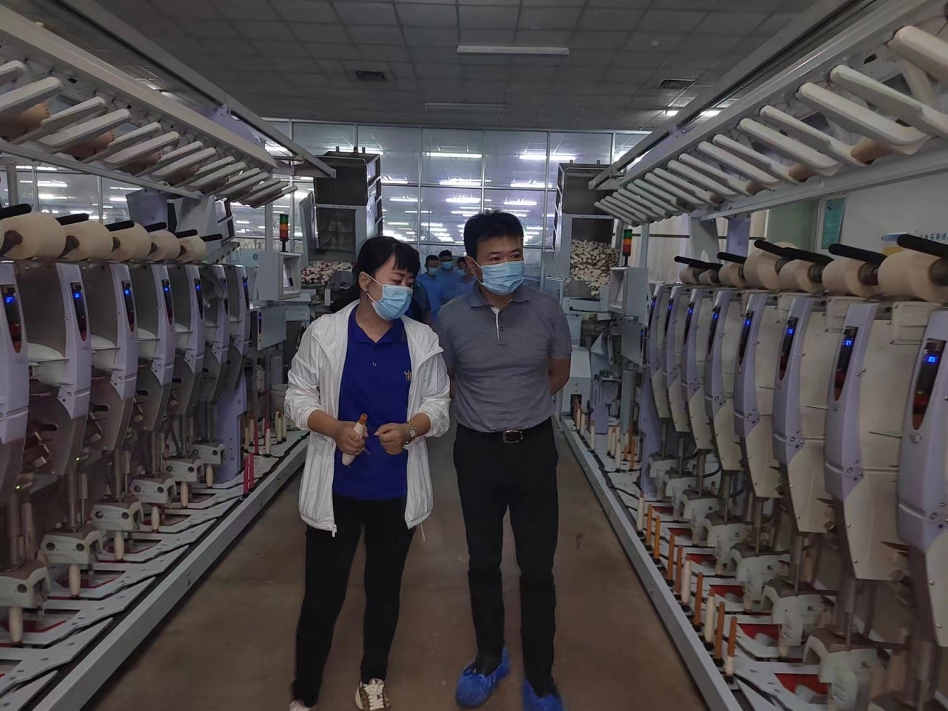盧剛首先到元首紡織生產車間實地查看了環(huán)錠紡、賽絡紡、轉杯紡等各條生產線生產運行情況,詳細了解了公司經營情況和轉型升級舉措,并對公司的未來發(fā)展方向提出積極地建設性意見。