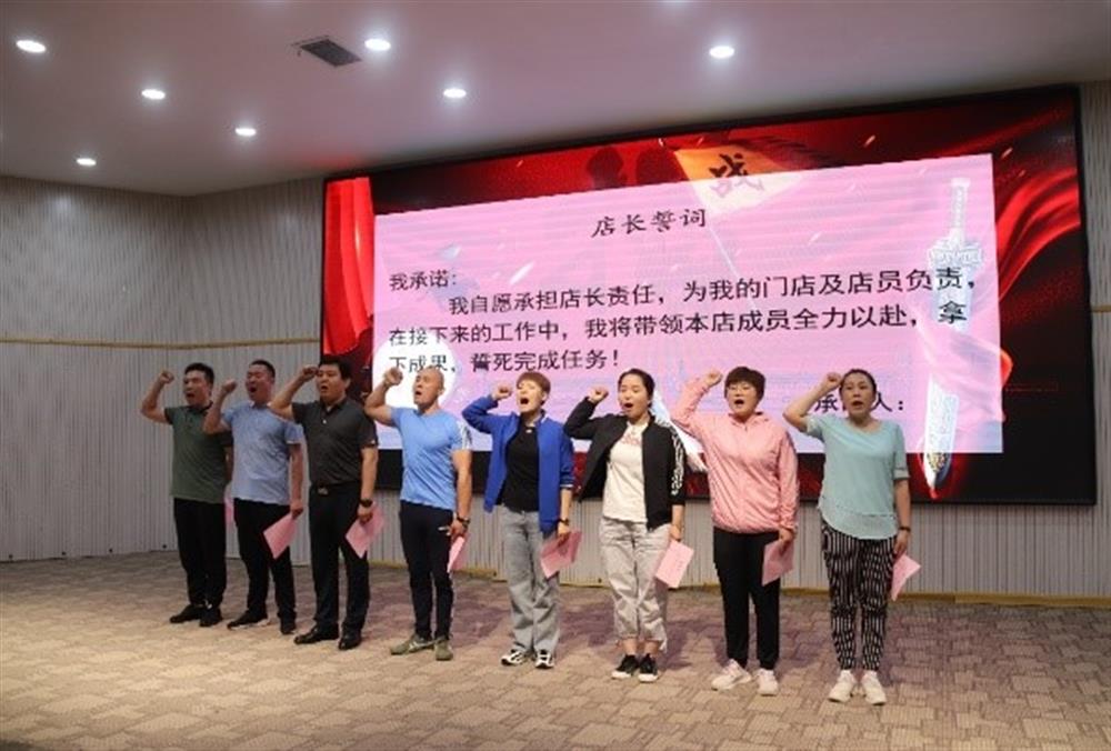 為激發(fā)全體員工齊心協(xié)力、共同奮進(jìn)的信心和目標(biāo)既定、勢(shì)必達(dá)成的決心,以釘釘子精神狠抓落實(shí),開創(chuàng)工作新局面,在競(jìng)拍活動(dòng)中開展激人奮進(jìn)的軍令狀簽署儀式?,F(xiàn)場(chǎng)77名店長(zhǎng)紛紛簽署軍令狀,2021年度經(jīng)營(yíng)結(jié)束后,根據(jù)現(xiàn)管門店收入完成情況,對(duì)競(jìng)拍考核合格者予以晉升。