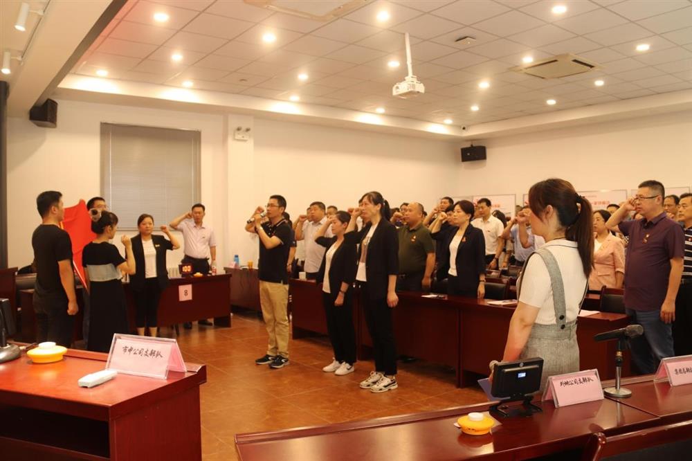 首先,在雄壯的國歌聲中,全體黨員齊聲高唱,氣氛非常熱烈。接下來,四名護(hù)旗手手持鮮紅的黨旗,在領(lǐng)誓員帶領(lǐng)下,新黨員進(jìn)行入黨宣誓,老黨員重溫入黨誓詞,黨委副書記馮秀娟為兩名新黨員佩戴了黨徽。隨后,餐飲支部李瓦寧進(jìn)行了精彩的黨課宣講。
