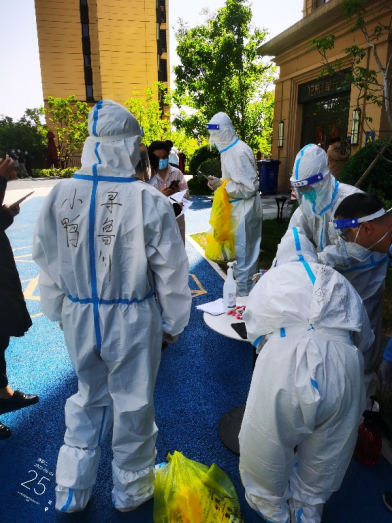 由于一直在高溫下“全副武裝”,志愿者的防護服早已被汗水浸濕,手掌被泡得發(fā)白,臉上也被口罩勒出了痕跡,更有志愿者出現(xiàn)了頭暈、流鼻血等中暑癥狀。盡管如此,他們也是稍加休整,便再次沖鋒向前。休息時間,志愿者們席地而坐,匆匆吃完奔赴崗位,因忙碌而錯過飯點更是常事,然而他們卻從未有過怨言;腰肌勞損、椎間盤不好的團隊干部即使腰疼的直不起來,也依舊抵擋不住他助力抗疫的熱情與行動。……小鴨志愿者尋魯川在協(xié)助核酸檢測時,有一個小男孩很不配合,由于當天的核酸檢測并沒有貼紙,男孩媽媽便偷偷準備了小貼畫,拜托尋魯川給小朋友貼上。尋魯川很感動,并且樂意幫忙,尋魯川說:“他兩只大眼睛直勾勾的盯著貼紙看,特別萌,心都被萌化了,真是開心了一整天,所有的疲憊都一掃而空。” …… 在抗“疫”前線,小鴨人和社區(qū)居民們互相理解,互相配合,如此令人感動又暖心的事跡不勝枚舉。
