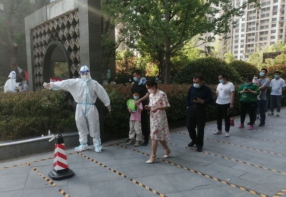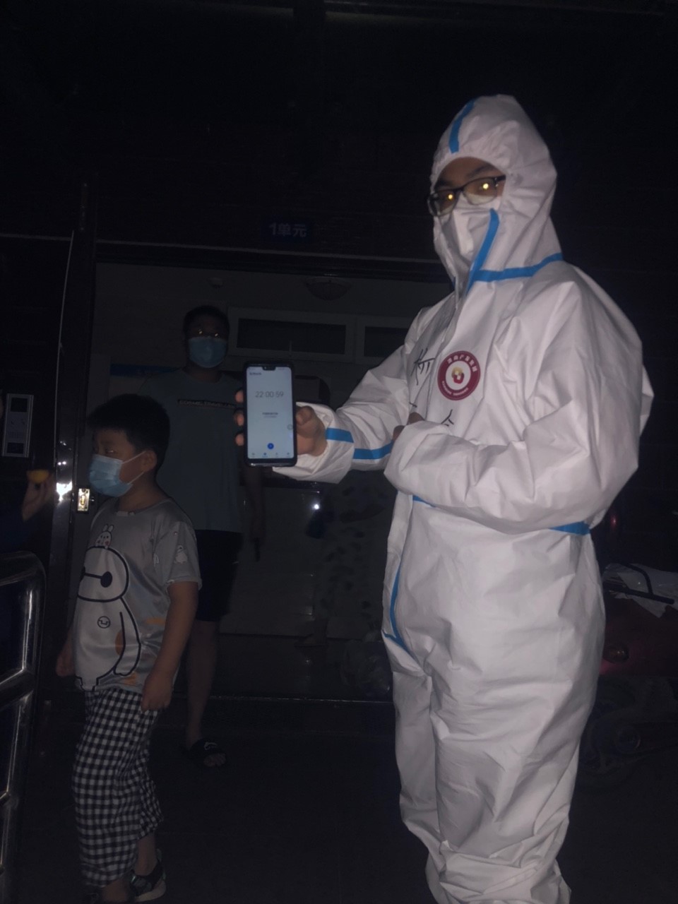 集團支援天橋區(qū)濱河雅居的下沉人員由翟思成帶隊,帶領郭正亮、杜瑞帥、趙士民、楊世興、馮鵬飛等5名志愿者,自4月27日進駐濱河雅居社區(qū)以來,他們聽從社區(qū)安排,進行核酸檢測維持秩序,人員摸排、統(tǒng)計數(shù)據(jù)等工作。“每天下班都得晚上10點半了”, 翟思成說,為保證社區(qū)居民核酸檢測不漏一人,雖然大家的居住地距離濱河雅居都很遠,但還是克服重重困難按時到崗,盡職盡責地完成社區(qū)工作。特別是自4月28日以來,濱河雅居樓棟出現(xiàn)密接和次密接,需要24小時管控,金鐘集團的志愿者白天維持核酸檢測秩序、給管控居民送菜送食品,晚上還要值夜班、進行住戶摸查,條件艱苦、工作勞累,但是志愿者們沒有怨言、只有擔當,他們用實際行動踐行國企責任,使命擔當。